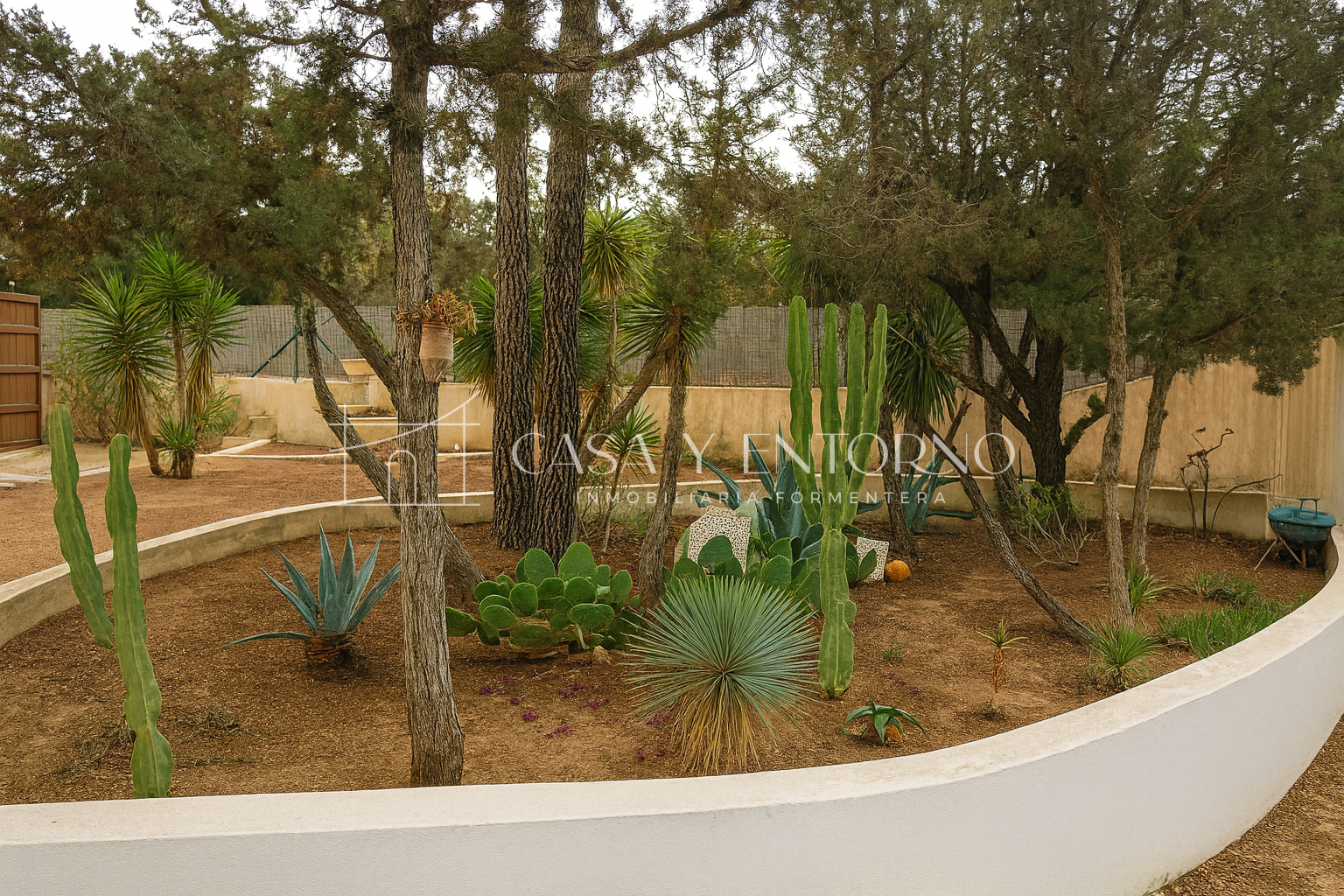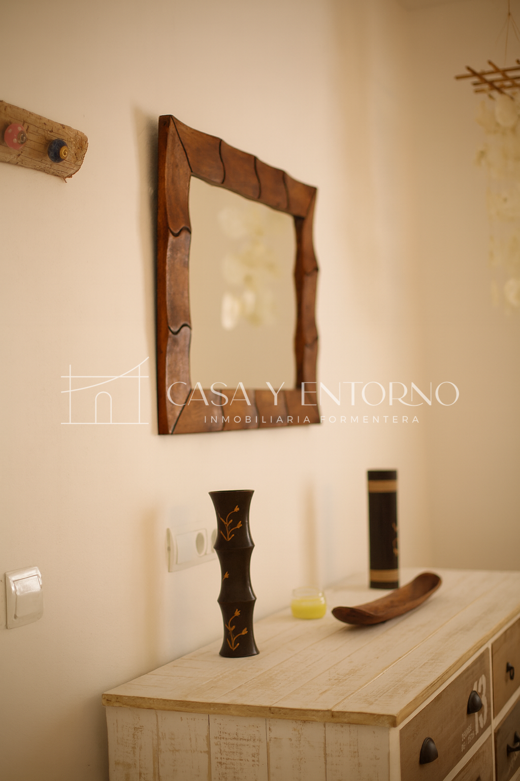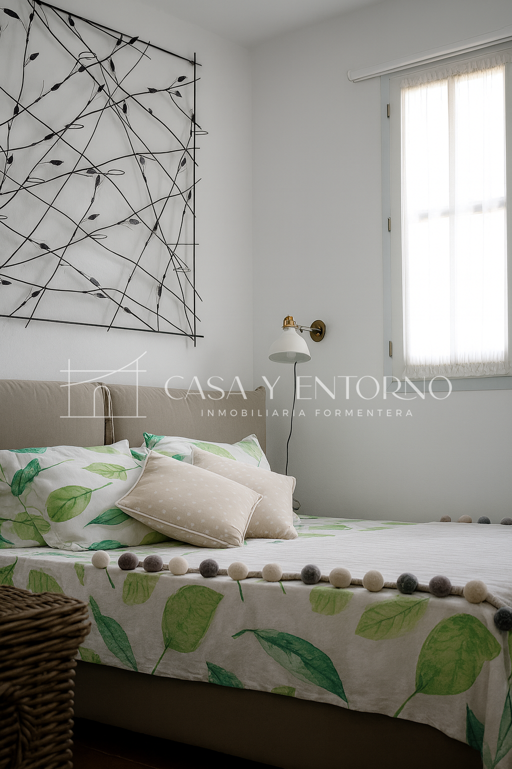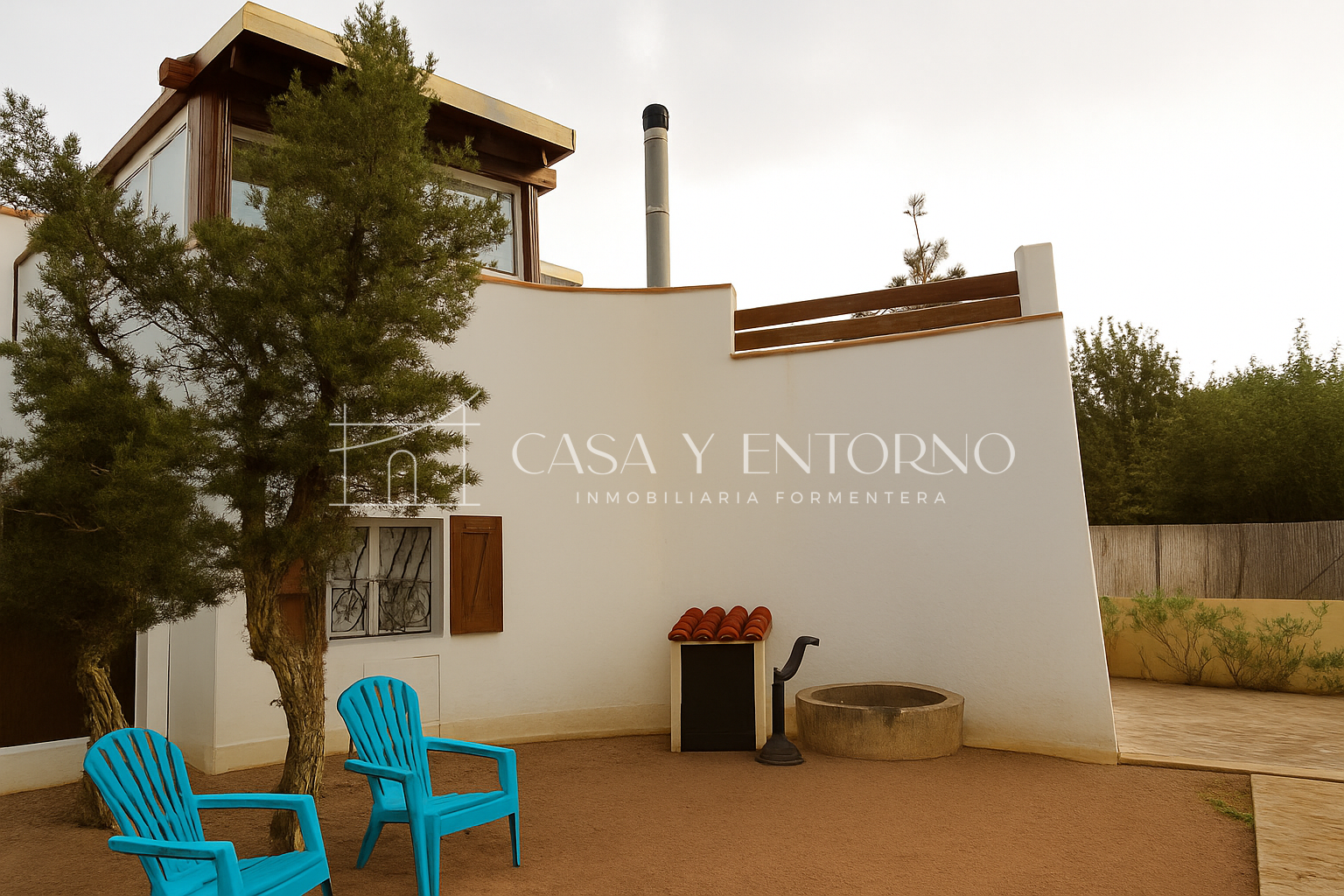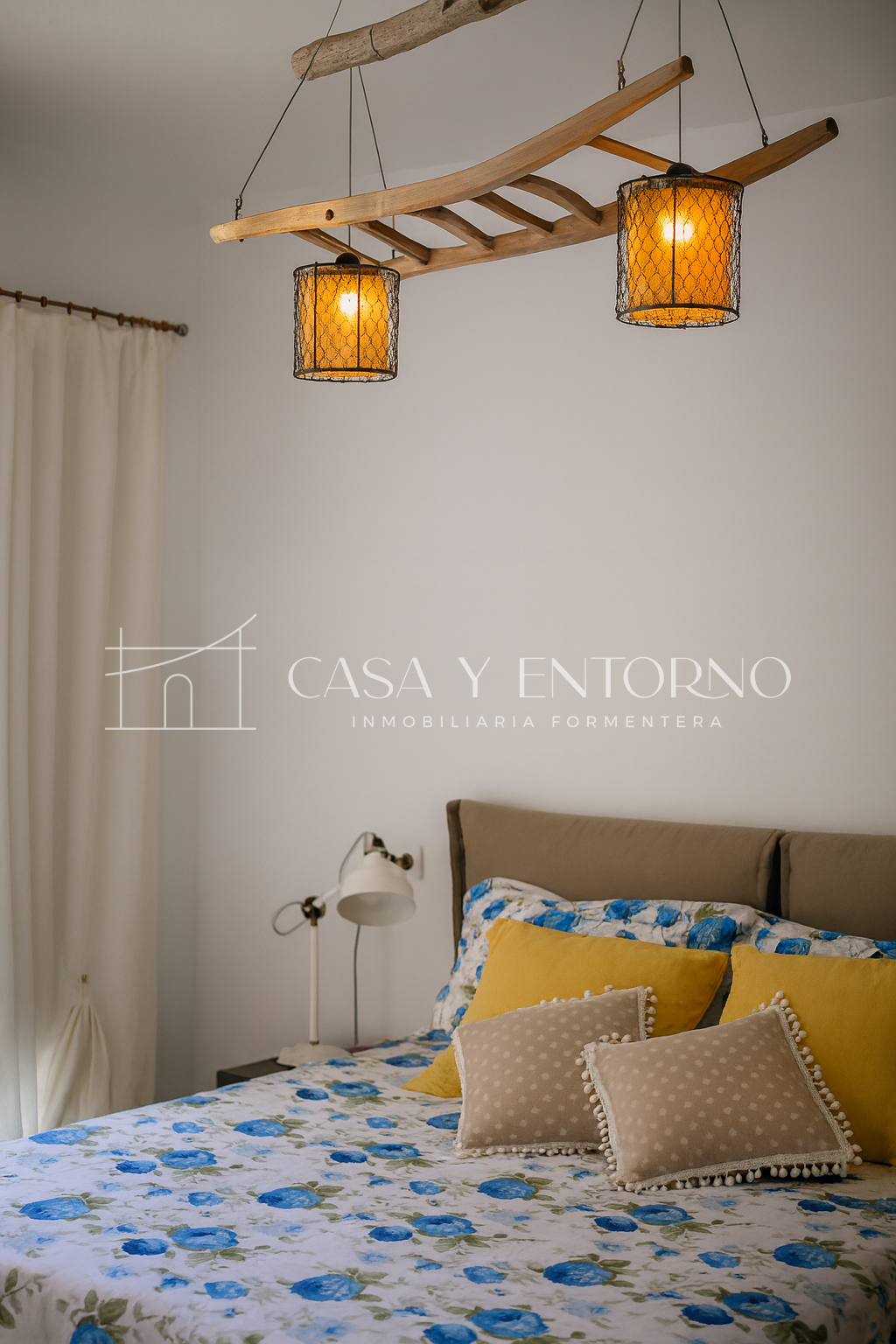 En el tranquilo entorno de Mitjorn, a solo 500 metros de la playa y a poca distancia del centro de Sant Francesc, se encuentra esta propiedad de 155 m² distribuida en dos plantas, capaz de combinar el carácter auténtico de Formentera con el confort moderno ideal para quienes desean disfrutar de la isla en total relajación. El amplio jardín privado de más de 1.000 m² rodea la casa y crea una atmósfera mediterránea única, con zonas sombreadas, árboles que aportan una agradable sensación de frescura y una barbacoa de obra perfecta para disfrutar al aire libre de las largas noches de verano. Completan los exteriores un aparcamiento privado y una práctica caseta/trastero, elementos muy útiles para la vida cotidiana.
