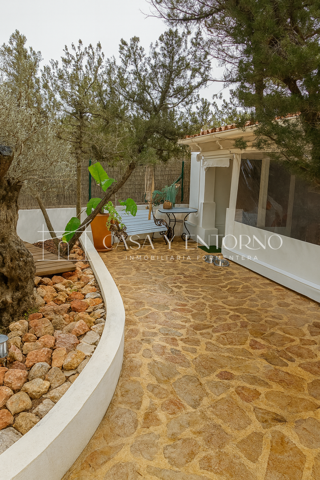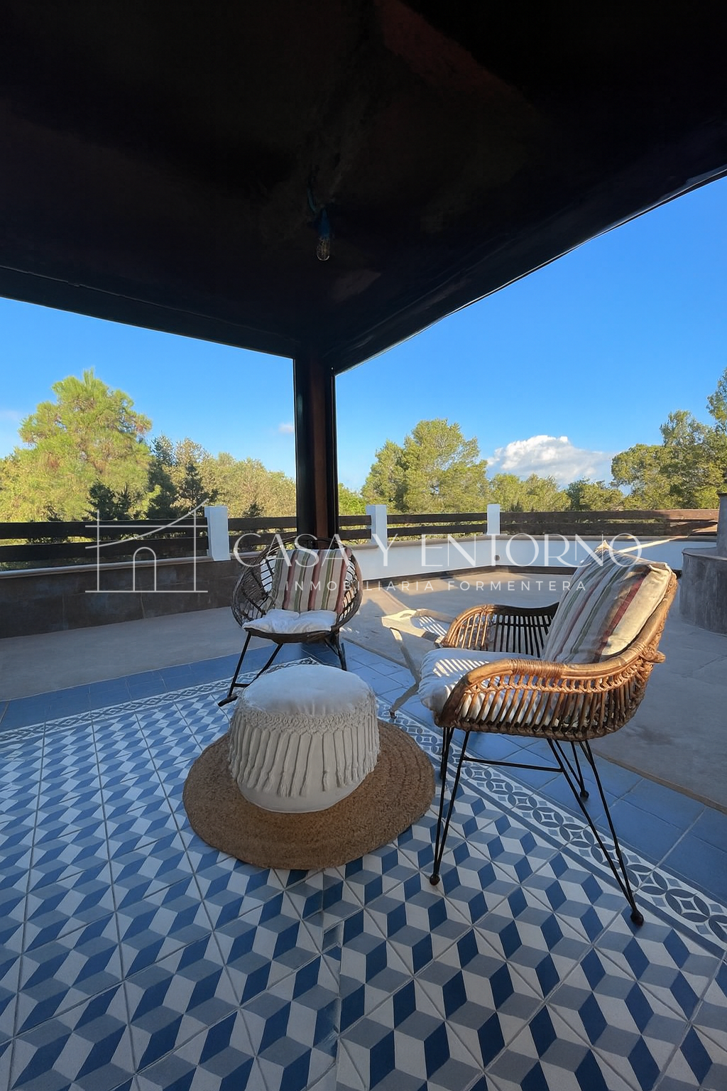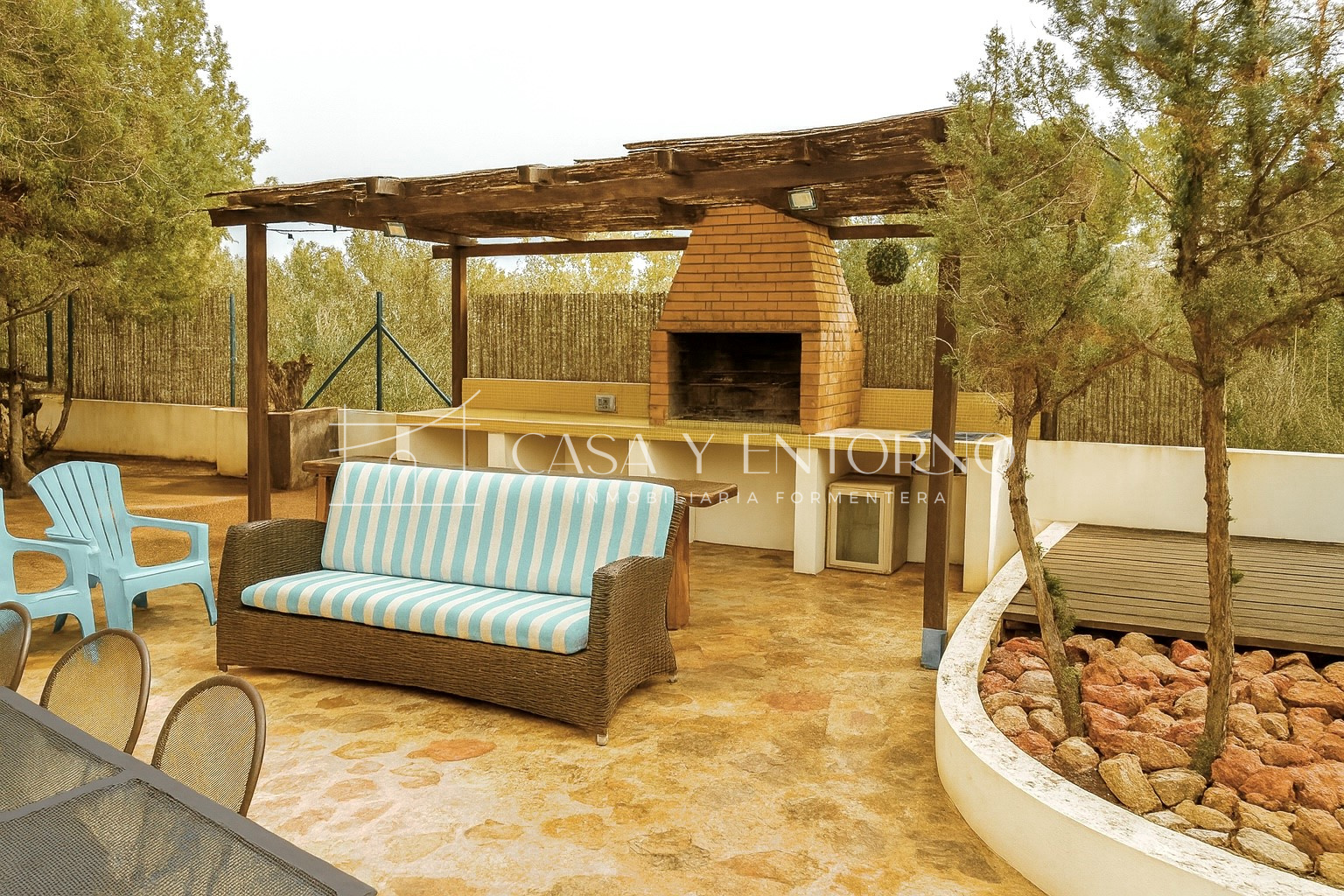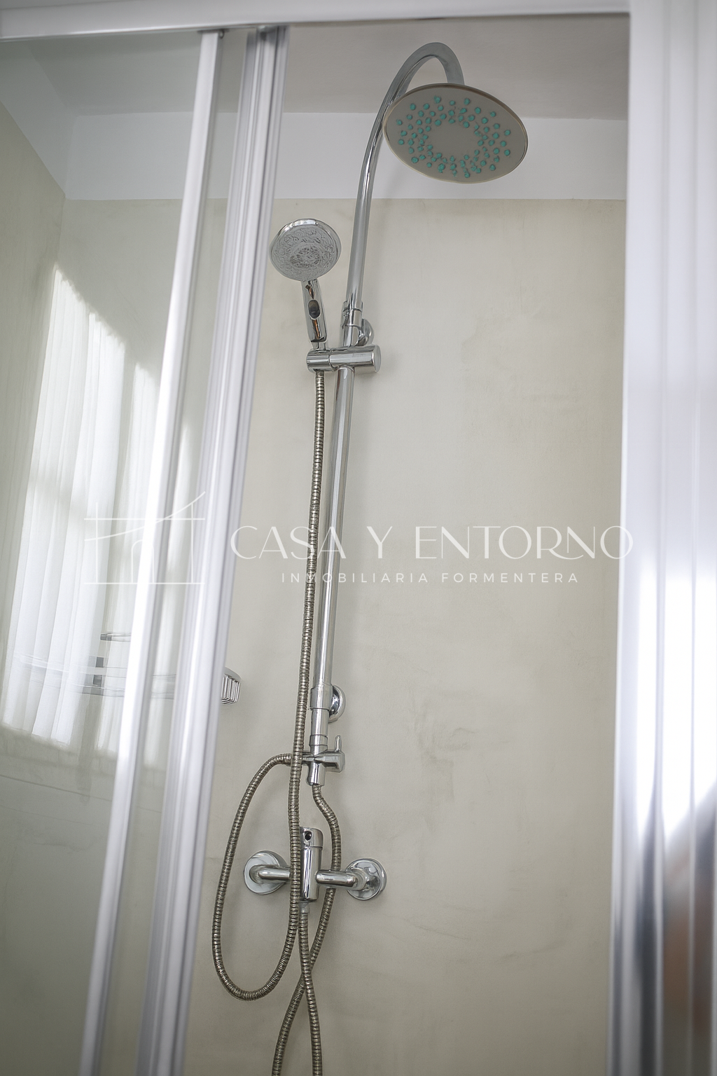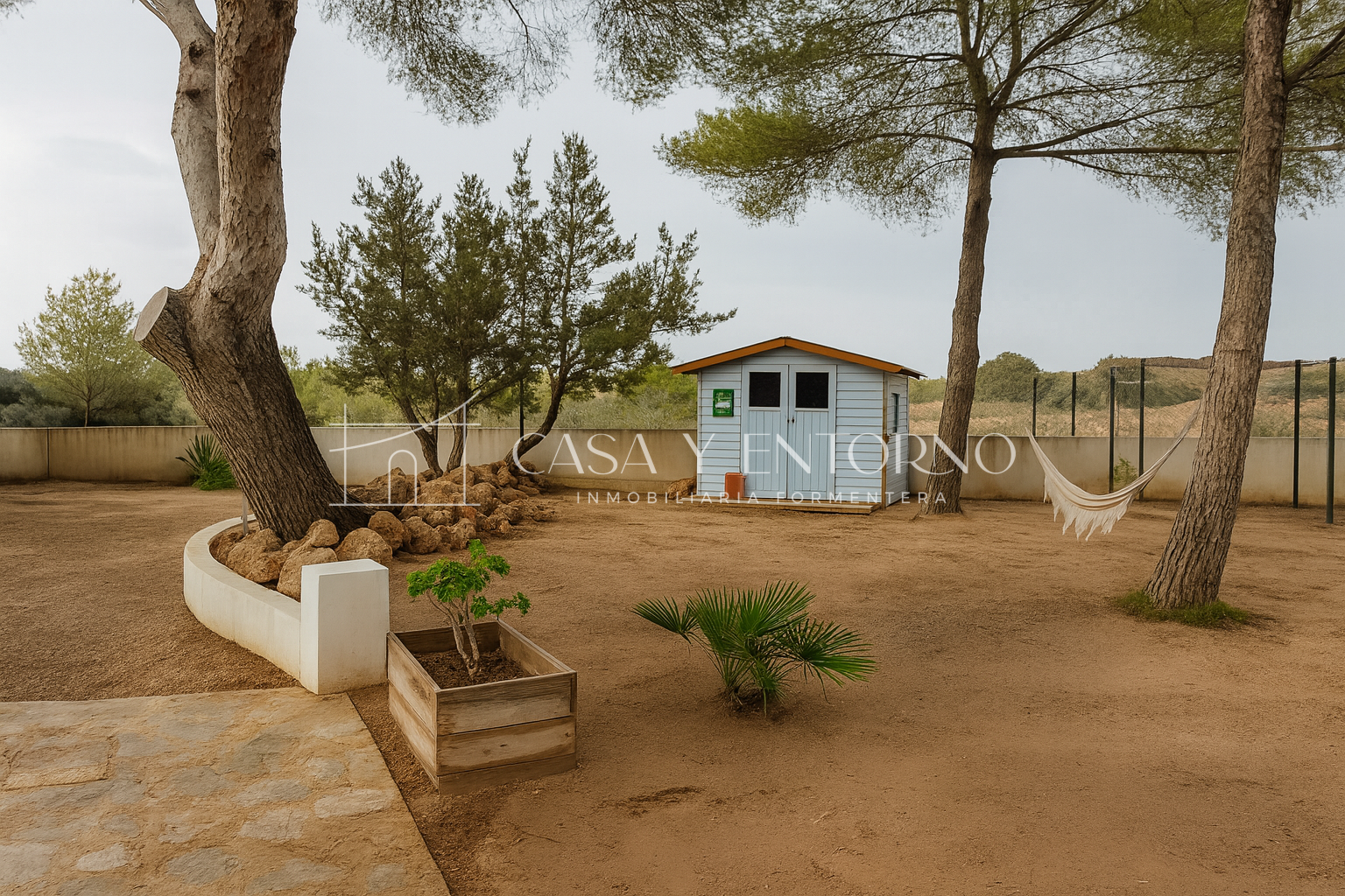 En el tranquilo entorno de Mitjorn, a solo 500 metros de la playa y a poca distancia del centro de Sant Francesc, se encuentra esta propiedad de 155 m² distribuida en dos plantas, capaz de combinar el carácter auténtico de Formentera con el confort moderno ideal para quienes desean disfrutar de la isla en total relajación. El amplio jardín privado de más de 1.000 m² rodea la casa y crea una atmósfera mediterránea única, con zonas sombreadas, árboles que aportan una agradable sensación de frescura y una barbacoa de obra perfecta para disfrutar al aire libre de las largas noches de verano. Completan los exteriores un aparcamiento privado y una práctica caseta/trastero, elementos muy útiles para la vida cotidiana.