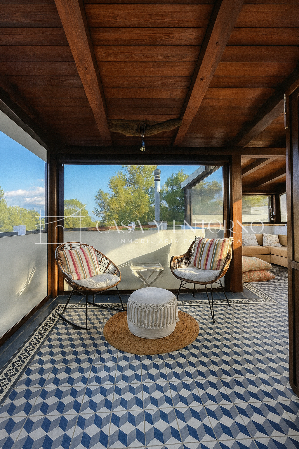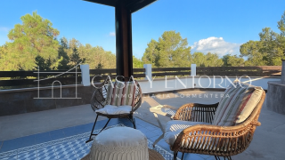 En la planta superior se encuentra una suite independiente con cocina privada, baño y dos amplias terrazas cubiertas que ofrecen un rincón exclusivo desde el que disfrutar del paisaje y de momentos de absoluta privacidad. La casa dispone de aire acondicionado en todas las estancias. La atención al detalle y el equilibrio entre elementos rústicos y acabados modernos crean un ambiente elegante, acogedor y relajante.