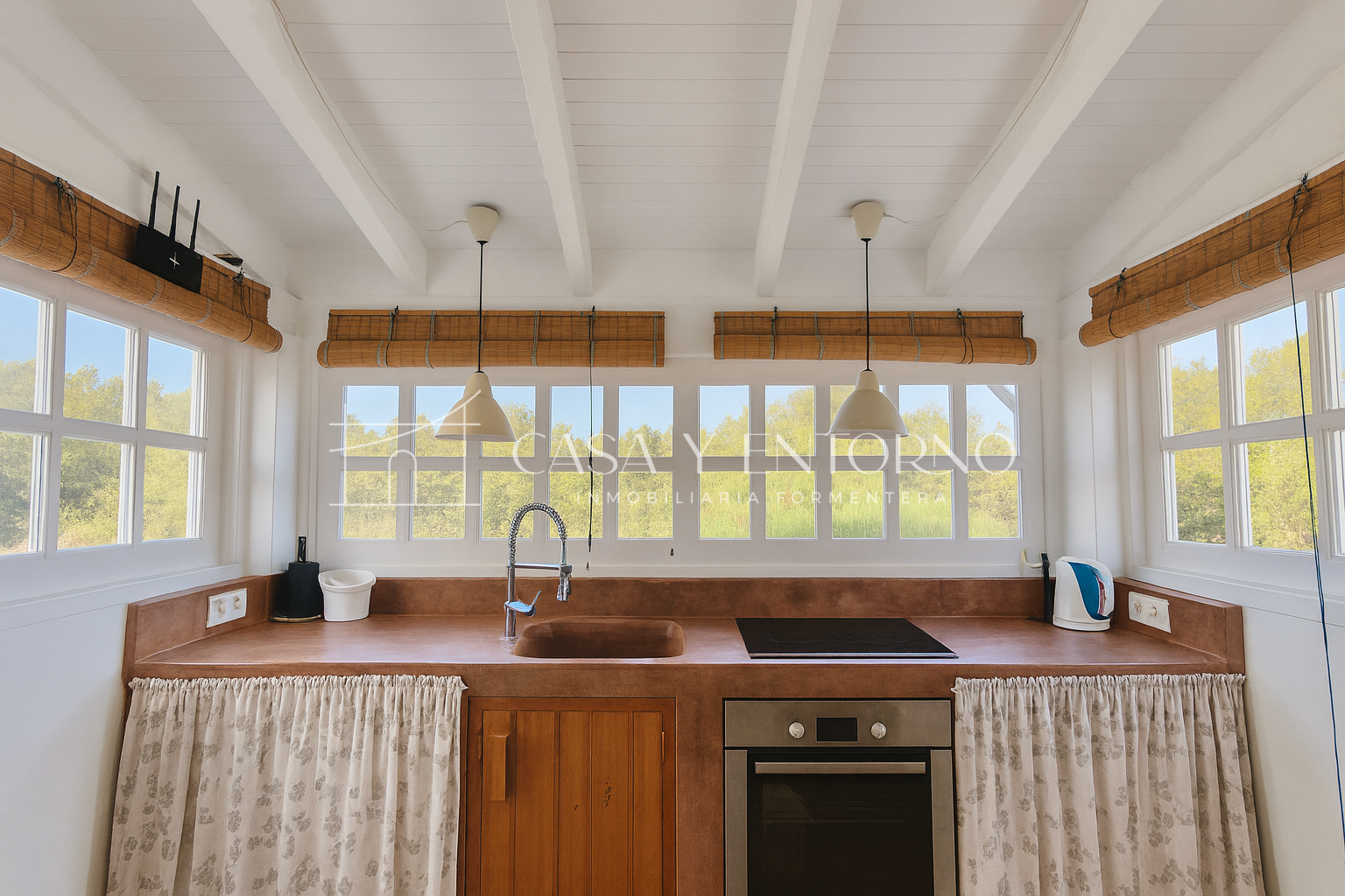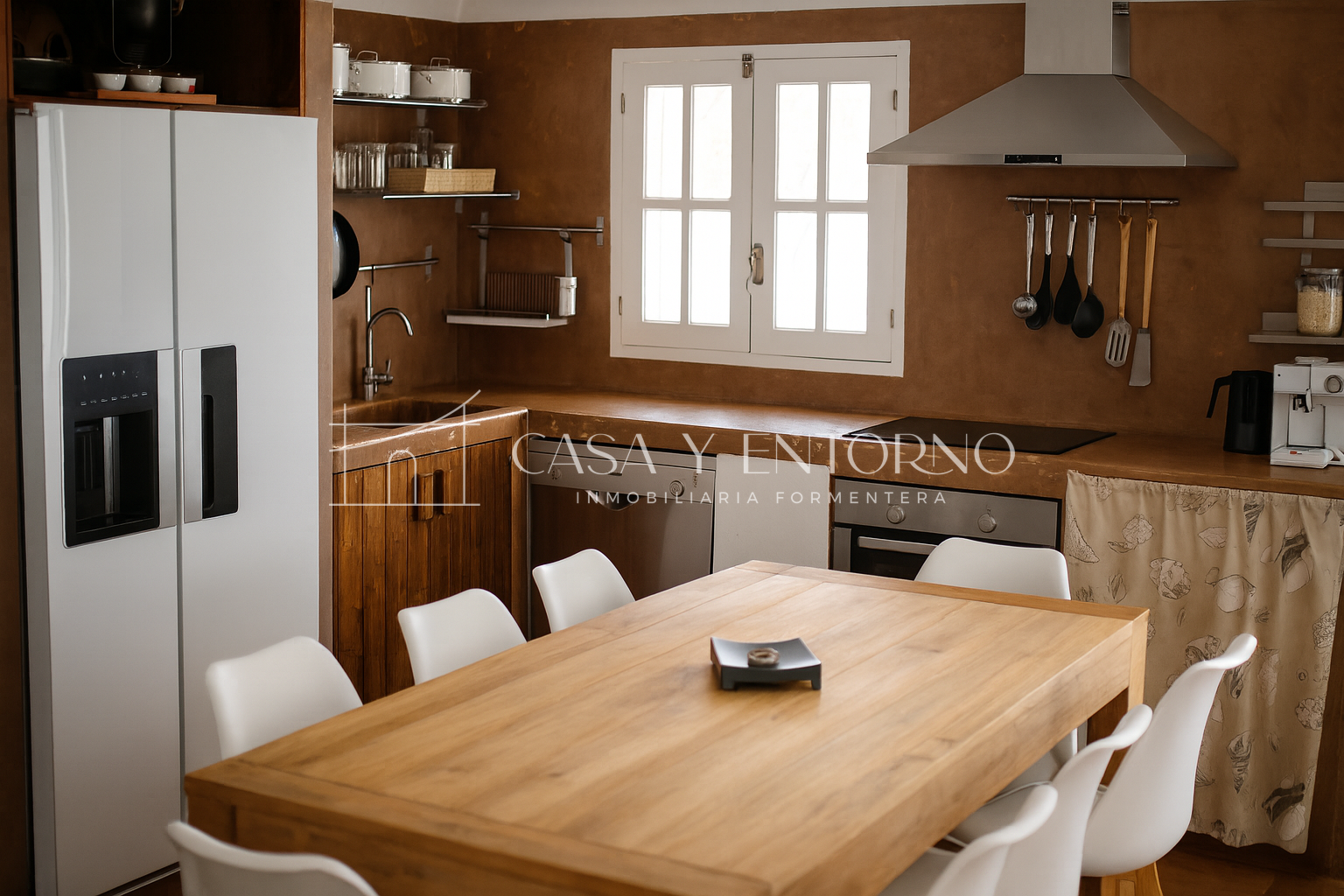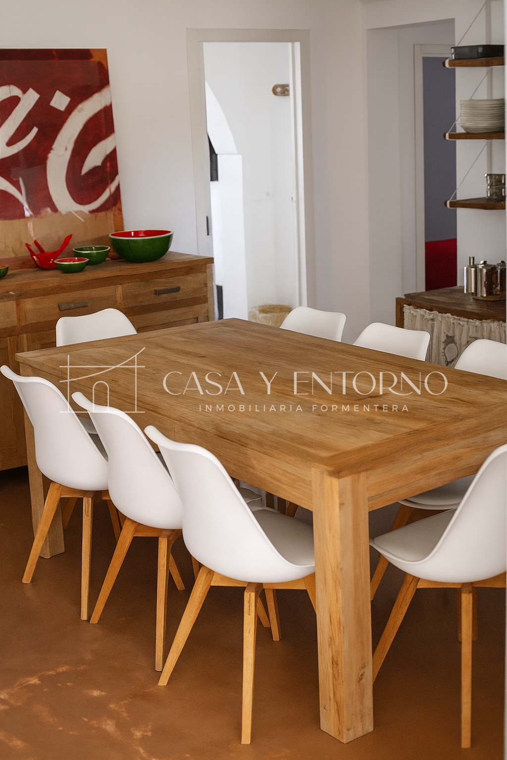 La ubicación es uno de sus puntos fuertes: permite llegar caminando a una de las playas más emblemáticas de Formentera, así como a varios restaurantes y chiringuitos históricos, todos situados a solo 500 metros de la casa, manteniéndose a la vez cerca de los pueblos y de los principales lugares de interés cultural de la isla. Esta propiedad representa un refugio mediterráneo lleno de encanto, ideal para quienes buscan una experiencia auténtica sin renunciar al confort contemporáneo, perfecta para vivir la isla o recibir invitados en un entorno exclusivo y armonioso.