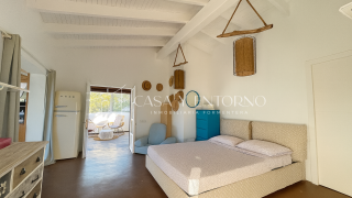 En el interior, la distribución prioriza la luminosidad y la funcionalidad: en la planta baja, la zona de día se articula en un gran espacio abierto donde la cocina completamente equipada se integra de forma armoniosa con el comedor y el salón; amplios ventanales conducen al patio sombreado, un espacio ideal para comer o relajarse al aire libre en cualquier época del año. Además, tres dormitorios acogedores, cuidados en cada detalle y caracterizados por el estilo típico de la isla garantizan confort y practicidad, junto con dos amplios baños con dobles lavabos.