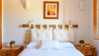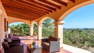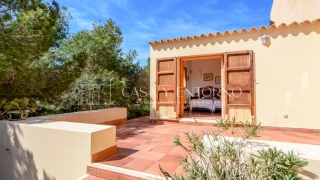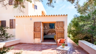 La vista panorámica se extiende hasta Es Vedrà, Ibiza y más allá, ofreciendo escenarios impresionantes. La playa, fácilmente accesible a pie, seencuentra a solo 100 metros de la vivienda.