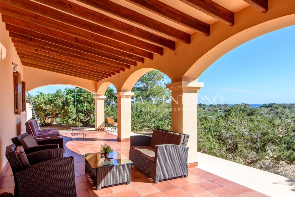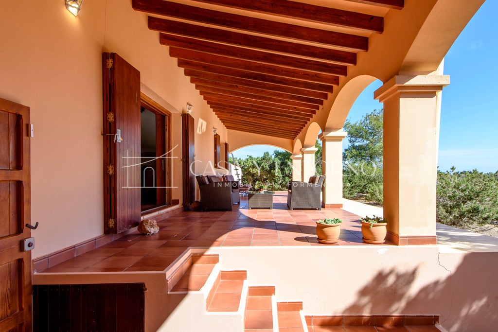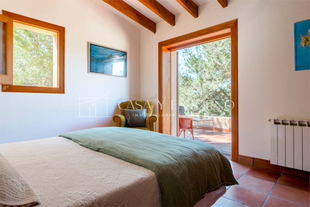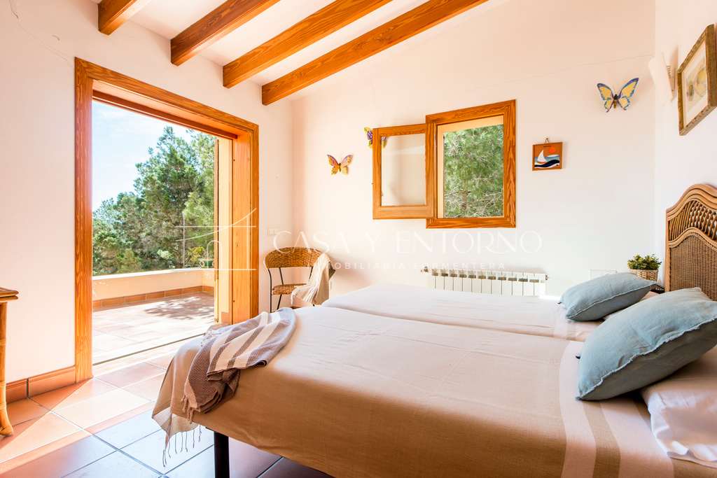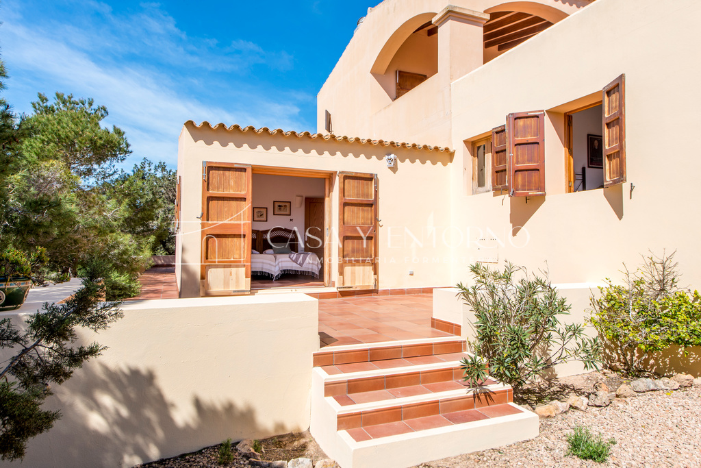 La vista panorámica se extiende hasta Es Vedrà, Ibiza y más allá, ofreciendo escenarios impresionantes. La playa, fácilmente accesible a pie, seencuentra a solo 100 metros de la vivienda.
