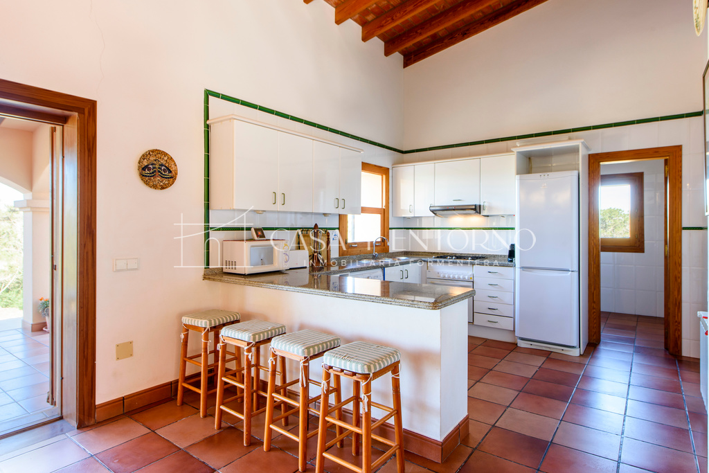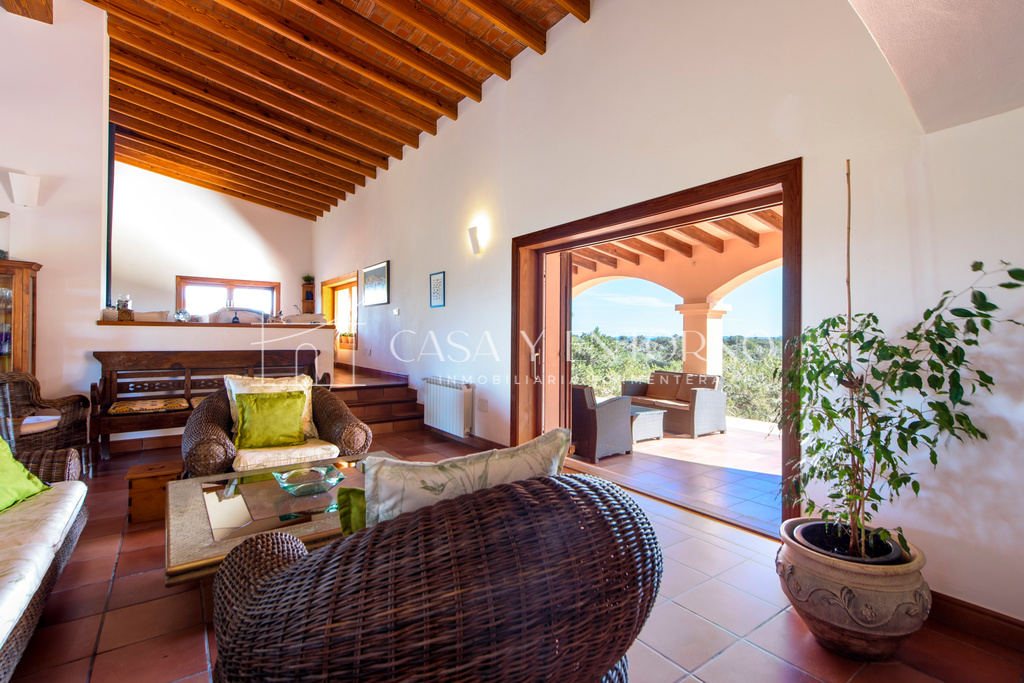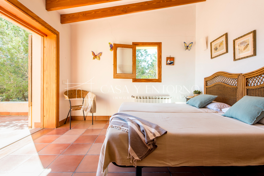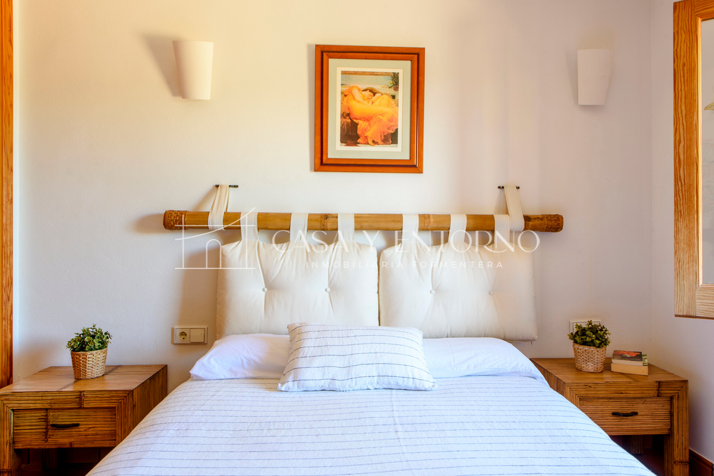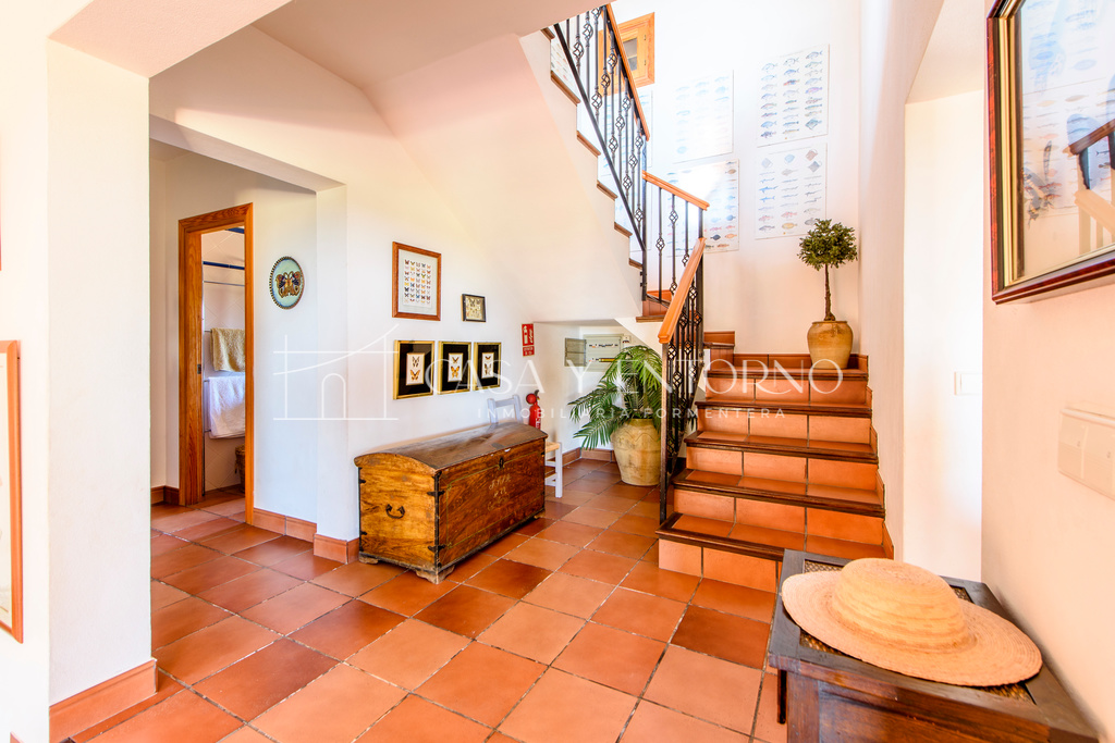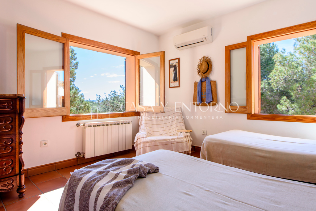 La vista panorámica se extiende hasta Es Vedrà, Ibiza y más allá, ofreciendo escenarios impresionantes. La playa, fácilmente accesible a pie, seencuentra a solo 100 metros de la vivienda.