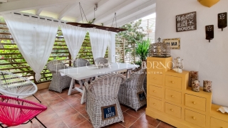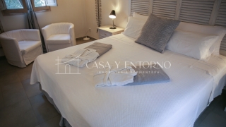 Se trata de una propiedad exclusiva y maravillosa compuesta por una villa con 5 dormitorios y 5 baños (actualmente dividida en dos casas, una con tres dormitorios y otra con dos), más 5 bungalows para invitados, una casa para el cuidador, una construcción separada para la lavandería y el pequeño trastero. Todo en un terreno de aproximadamente 4.000 m², con un amplio jardín y una gran piscina.