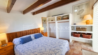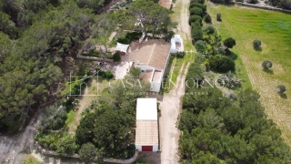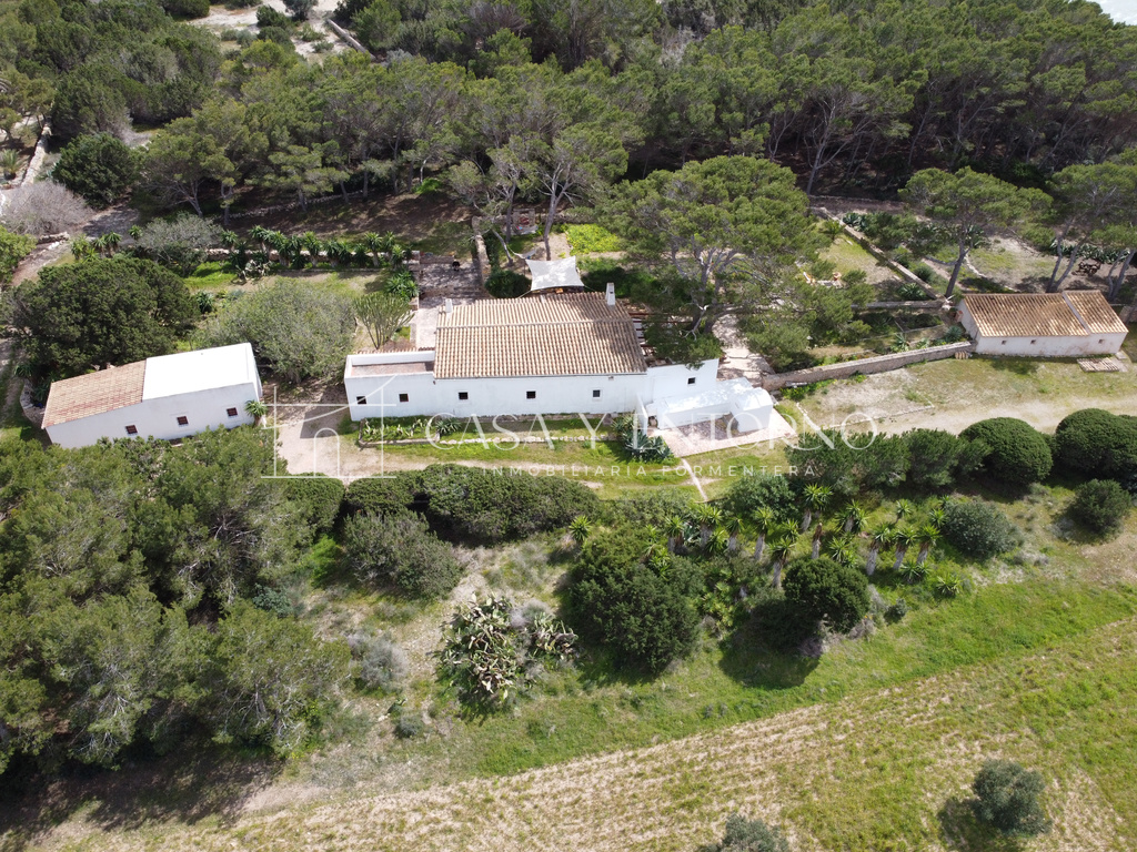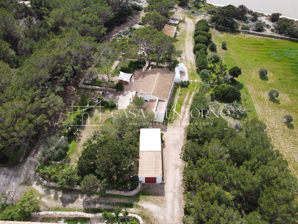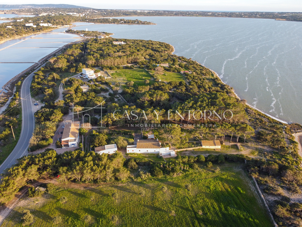 Se accede desde la carretera principal que conecta La Savina con Es Pujols, a través de una entrada privada vallada. El camino lleva primero a un garaje de 50 m², luego a la casa principal (una antigua finca) y, al final del terreno, a la dependencia junto al agua.