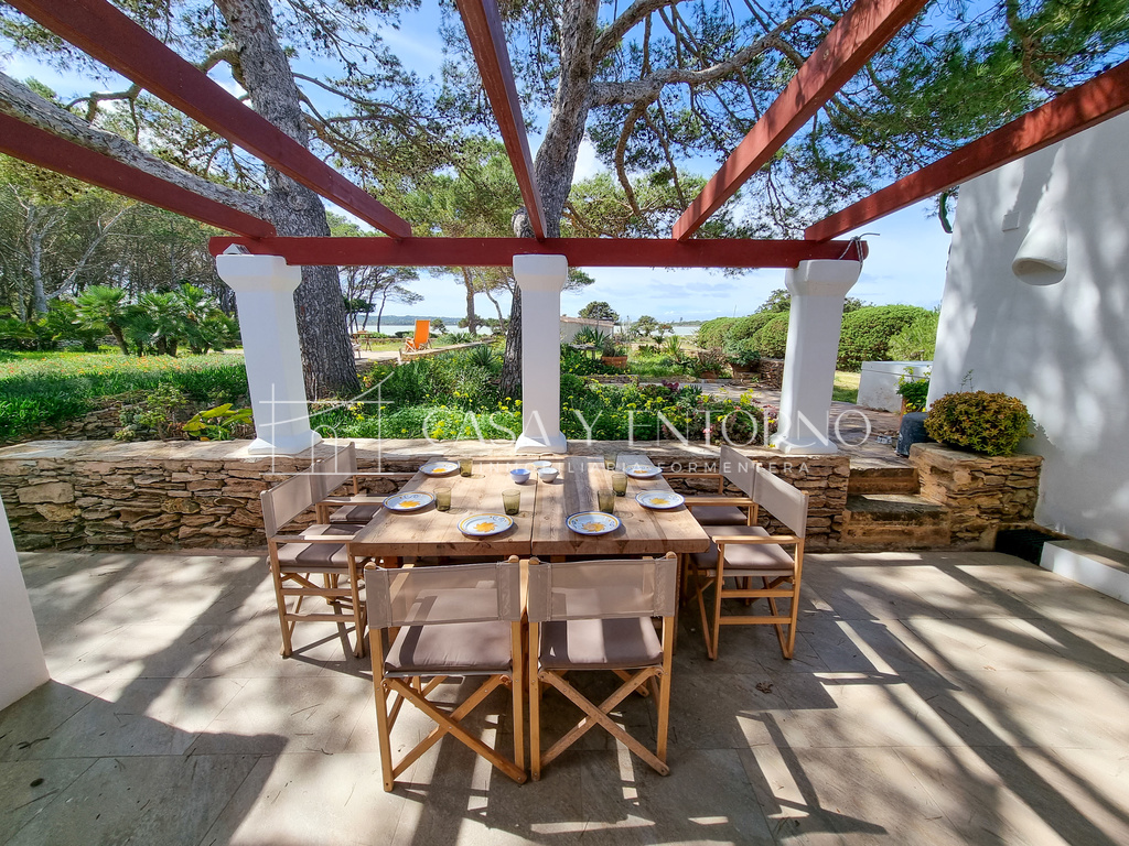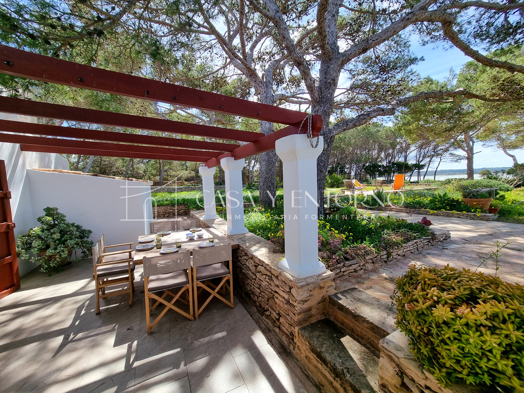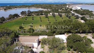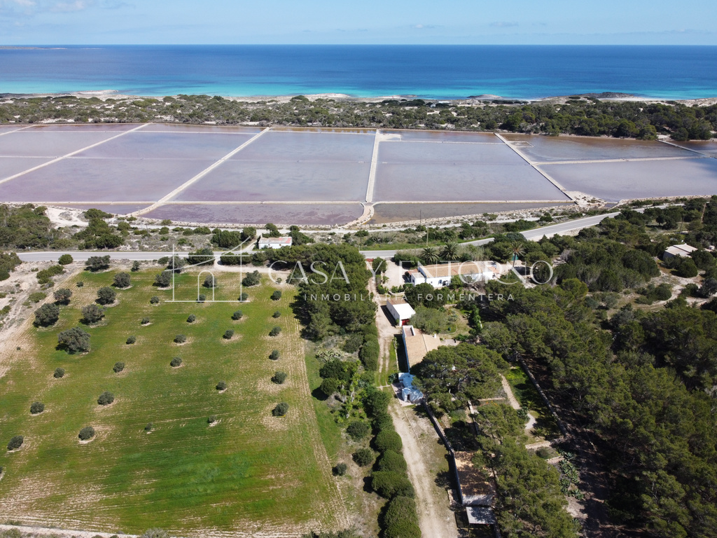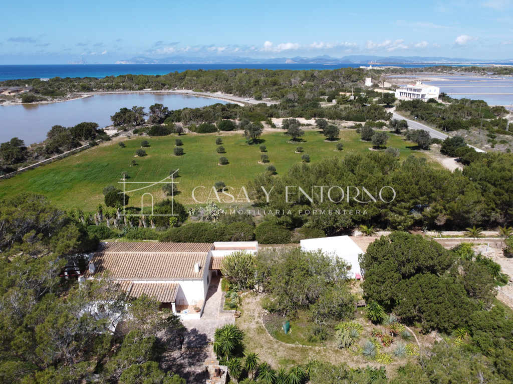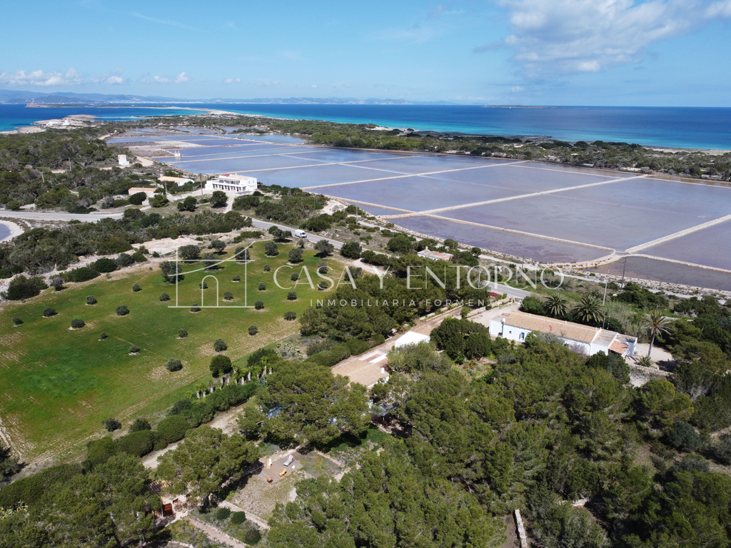 Ubicada en el corazón del Parque Natural de Illetas, en una zona protegida, esta extraordinaria propiedad se encuentra a tan solo 400 metros de la playa y a 1.200 metros del pueblo de La Savina. Una ubicación inigualable, prácticamente pieds dans l’eau, rodeada por un terreno paisajístico de 6.048 m² con plantas autóctonas como algarrobos, enebros, buganvillas, agaves y un frondoso bosque de pinos marítimos que se extiende hasta el agua.