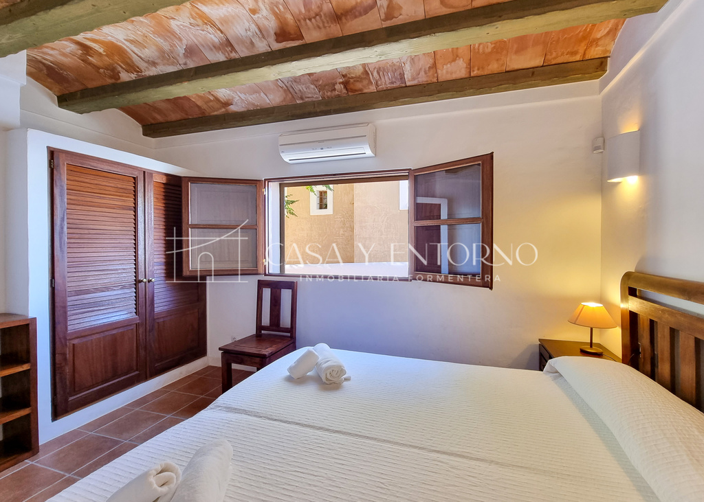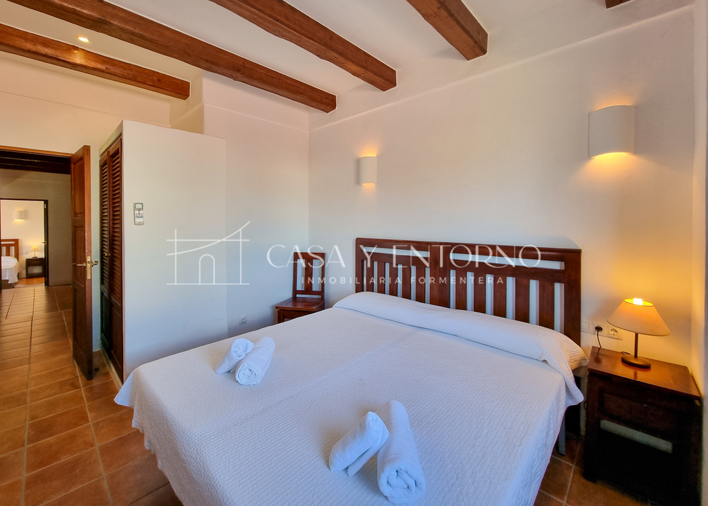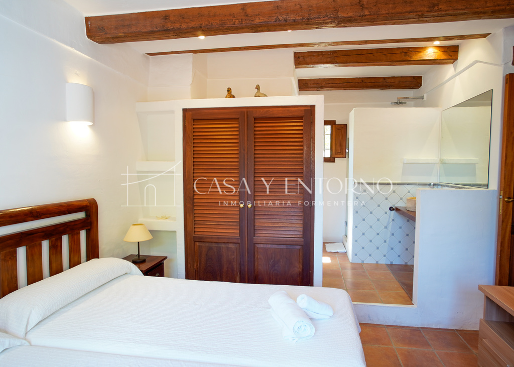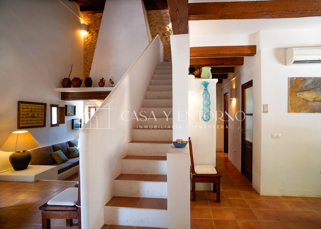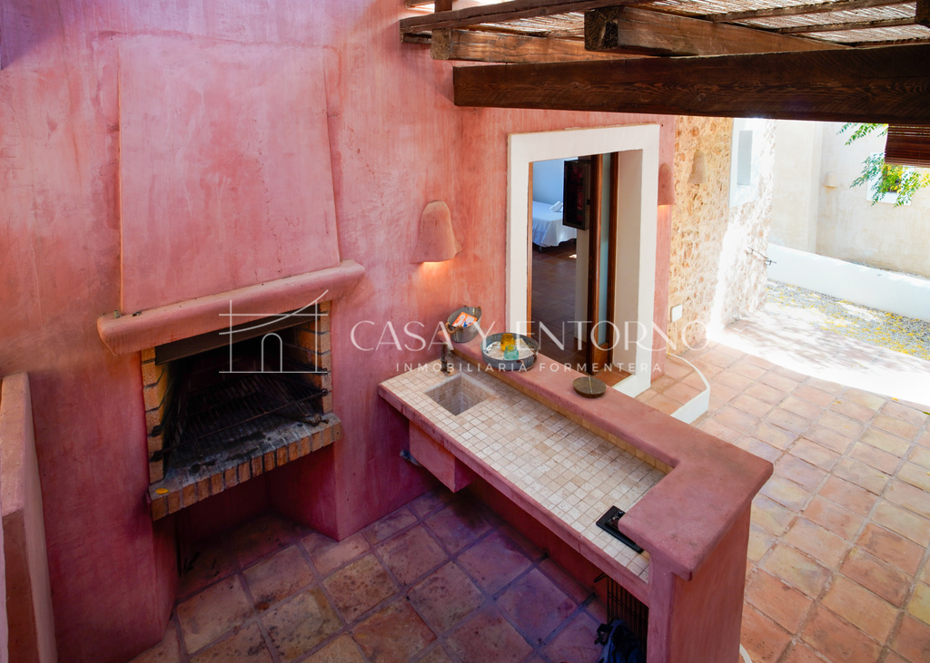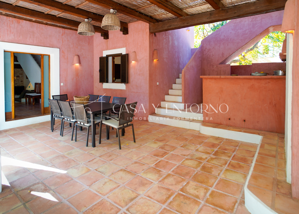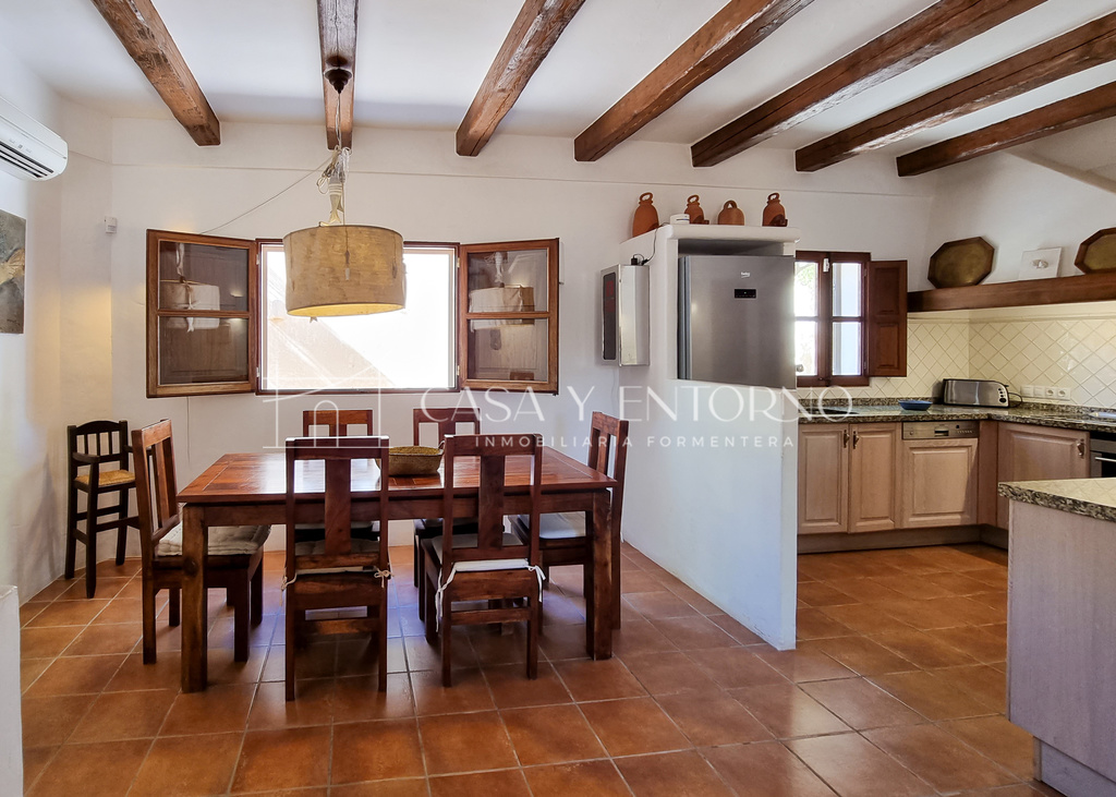 Questa ampia proprietà "chiavi in mano" in stile mediterraneo si trova in una tranquilla zona residenziale del paesino di San Francisco, a Formentera. Perfetta per famiglie, grazie alla sua vicinanza ai principali servizi dell’isola e alla funzionale distribuzione degli spazi.